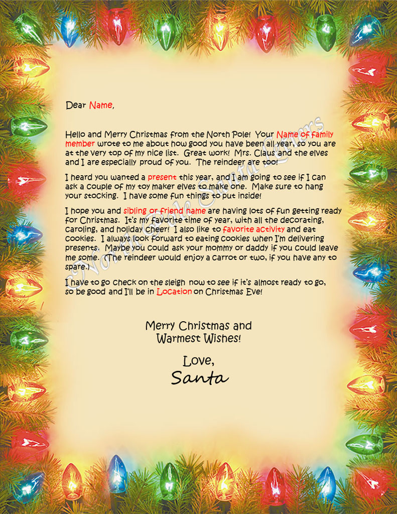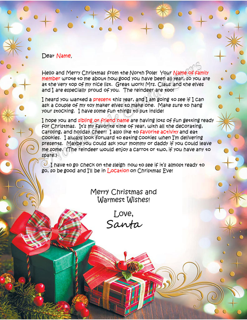 Family and Activities is a fun general letter from Santa Claus. It is filled with news of life at the North Pole. It also recognizes some of the child’s favorite activities. This letter has plenty of opportunity to personalize to the child’s life.