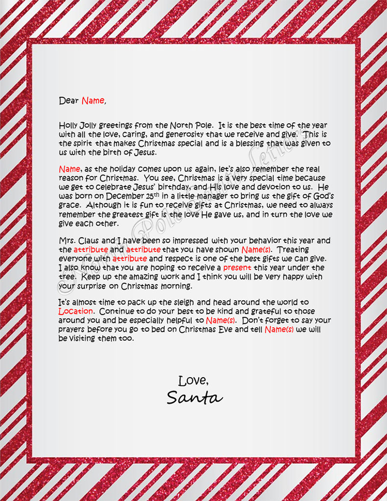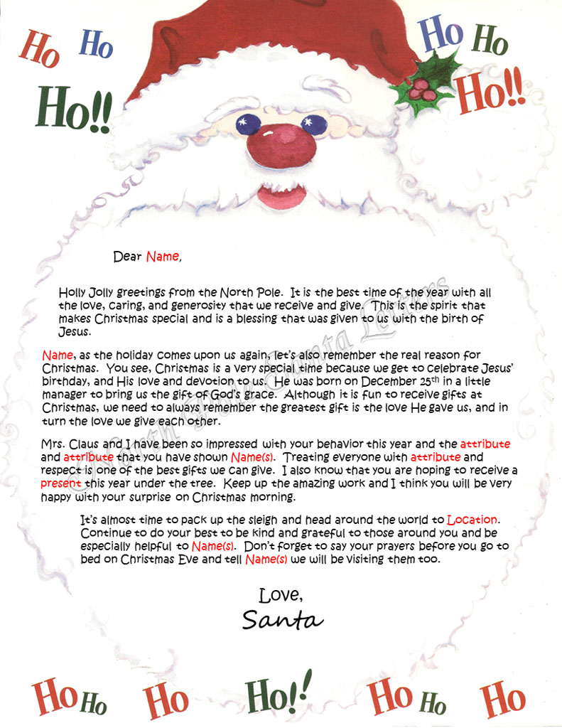 Christmas is a time to celebrate the birth of Jesus and thank God for all we have. God’s Grace is a letter to let Santa help remind your child about the true meaning of Christmas.