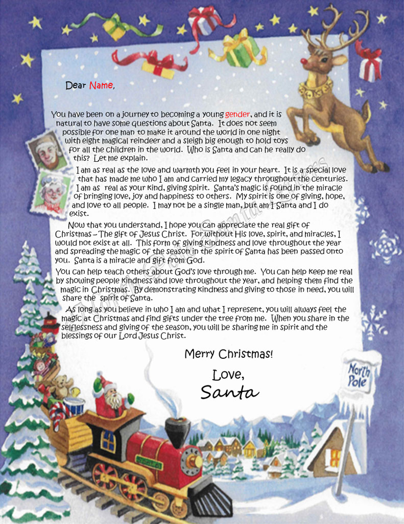 The Gift of God’s Love is a heartwarming letter written to your child to help explain who Santa really is and the magic behind the season. This letter talks about the real gift of Christmas, the gift of Jesus.